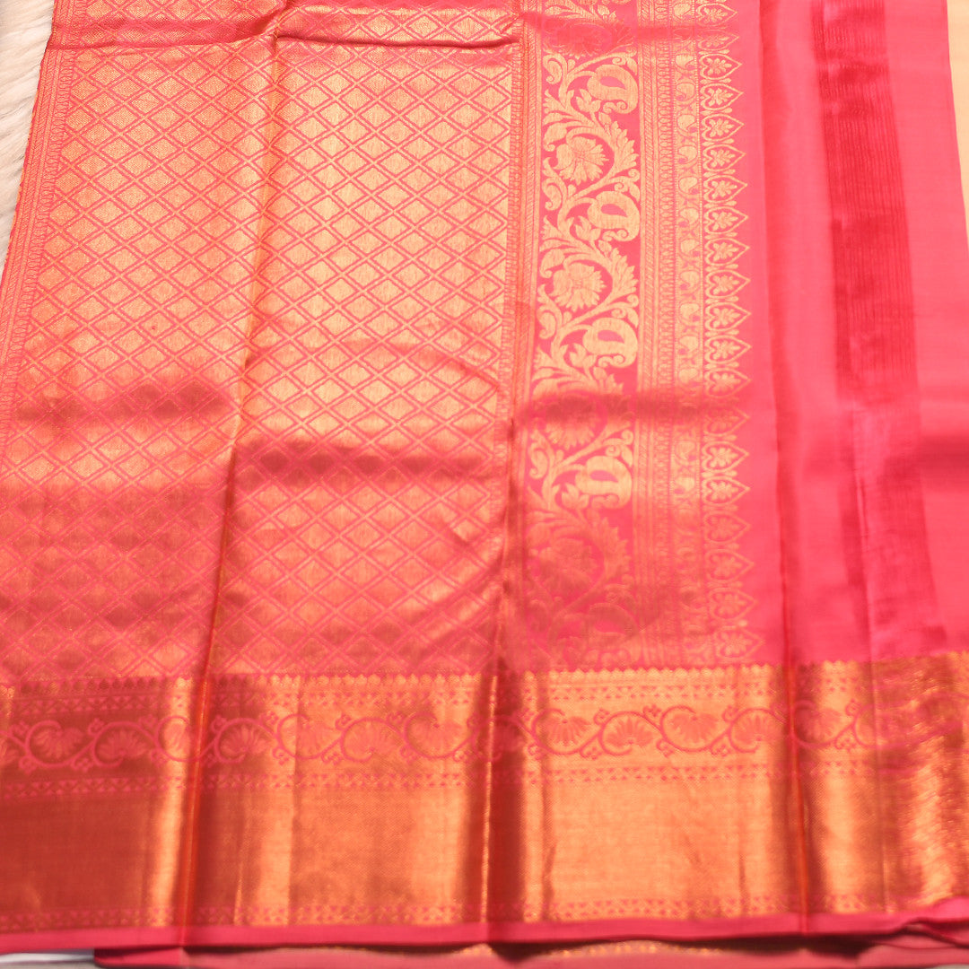 HV 1972 presents an elegant six-yard saree that seamlessly blends timeless sophistication with contemporary grace. The off-white body provides a refined canvas, while the striking pink pallu adds a touch of refined femininity and visual interest. This classic color combination offers versatility for both traditional occasions and modern celebrations, making it an essential addition to any discerning wardrobe. Perfect for those who appreciate understated elegance with a subtle pop of color.