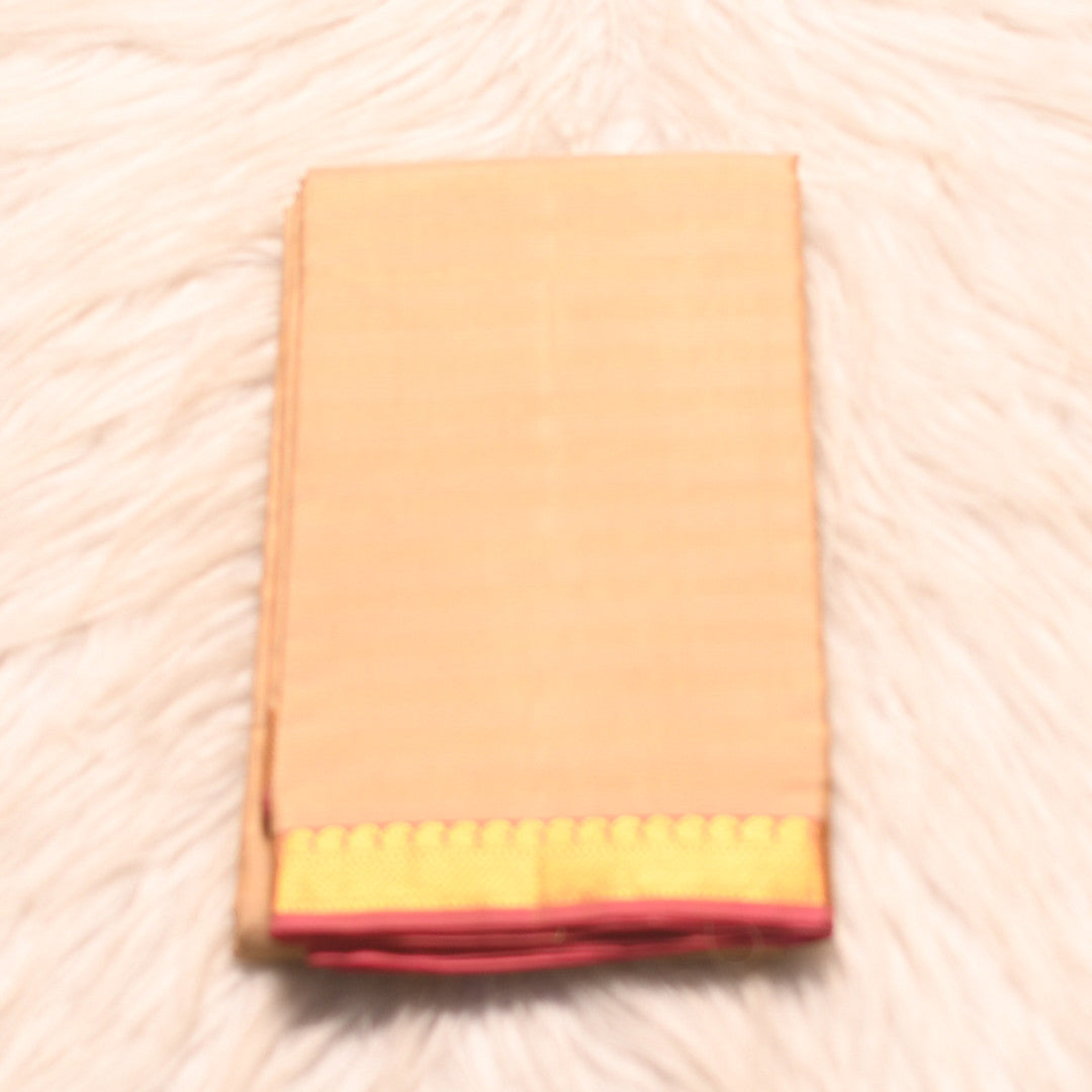 Drape yourself in timeless elegance with this exquisite pure silk saree, a masterpiece of traditional craftsmanship. Featuring a graceful body in a soft, complementary hue, this six-yard saree showcases an intricately designed pallu adorned with delicate embellishments. The back border displays refined detailing with subtle motifs, while the small design elements add understated sophistication throughout. Crafted from premium pure silk, this saree offers a luxurious drape and natural sheen that elevates any occasion. Perfect for celebrations, festivals, or formal gatherings, it seamlessly blends heritage artistry with contemporary grace.