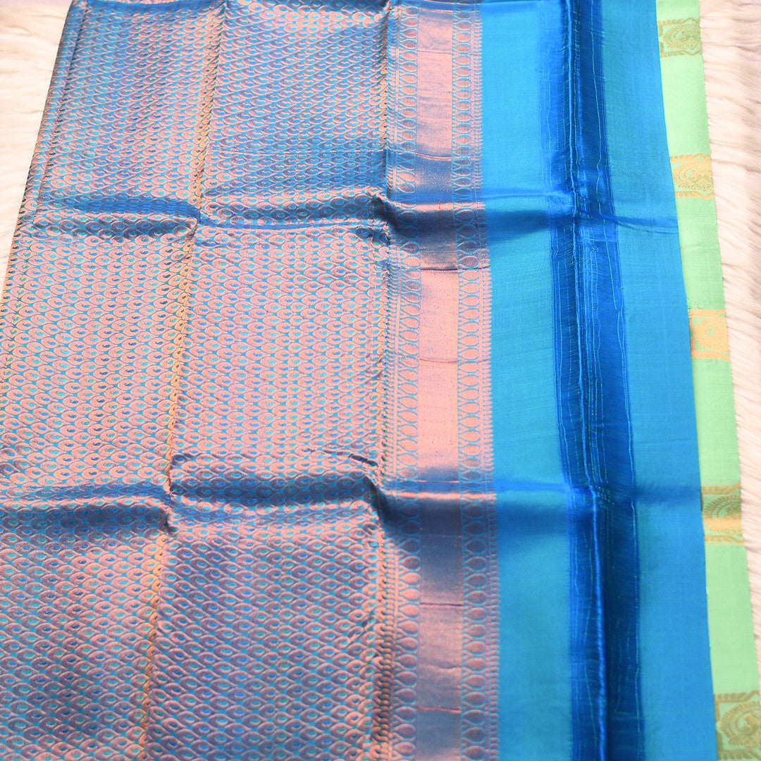 Drape yourself in timeless elegance with this exquisite 6-yard saree, featuring a serene sky blue body that exudes understated sophistication. The delicate zari border adds a touch of refined luxury, while the striking blue pallu serves as a stunning focal point. Perfect for both traditional occasions and contemporary celebrations, this piece seamlessly blends classic craftsmanship with graceful design. The intricate zari detailing elevates the overall aesthetic, making it an ideal choice for those who appreciate premium fabrics and meticulous artistry.