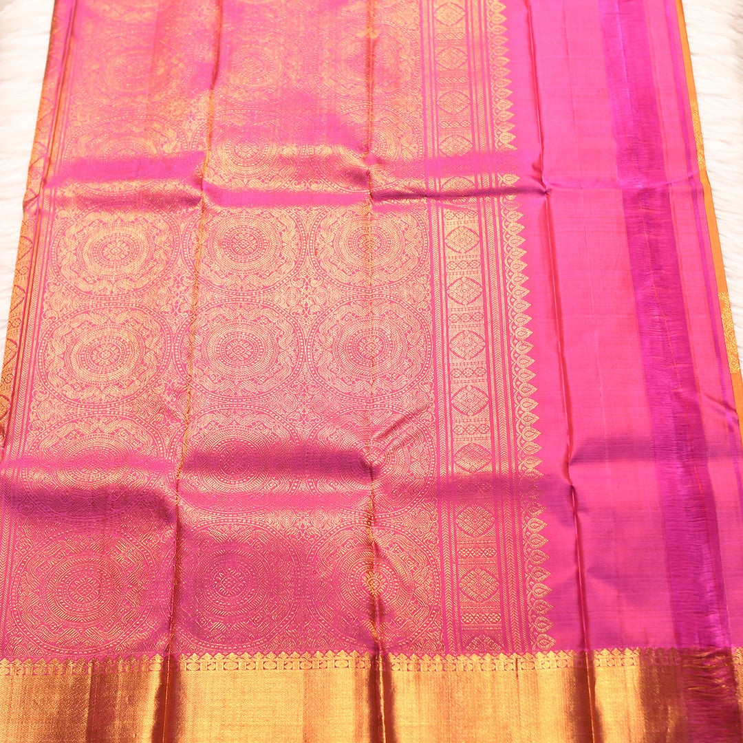 # HV-2381 (6 Yards Saree) Elevate your wardrobe with this exquisite six-yard saree, featuring a sophisticated mustard body that exudes timeless elegance. The saree is adorned with intricate zari detailing along the border, showcasing traditional craftsmanship and refined artistry. The striking pink pallu adds a graceful contrast, creating a harmonious blend of classic and contemporary aesthetics. Perfect for festive occasions and celebrations, this piece combines premium fabric quality with ornate embellishment, making it an essential addition to any discerning collection.