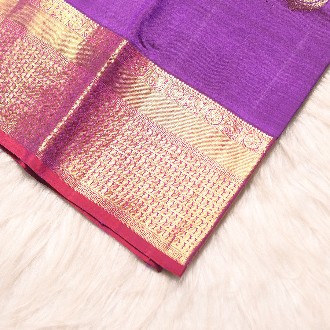 Drape yourself in timeless elegance with this exquisite 6-yard saree, featuring a lavender body adorned with intricate zari butta work. The sophisticated design is elevated by a striking pink border and pallu that frame the silhouette beautifully. The delicate zari embellishments showcase masterful craftsmanship, while the harmonious colour palette of lavender and pink creates a refined, versatile look suitable for both festive occasions and refined gatherings. Perfect for the discerning wearer who appreciates traditional artistry with contemporary grace.