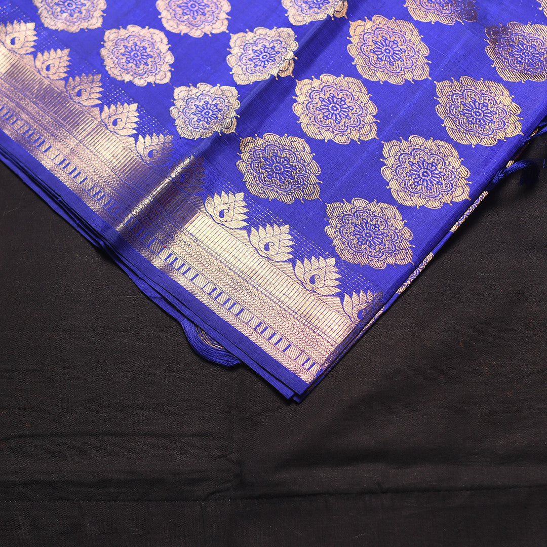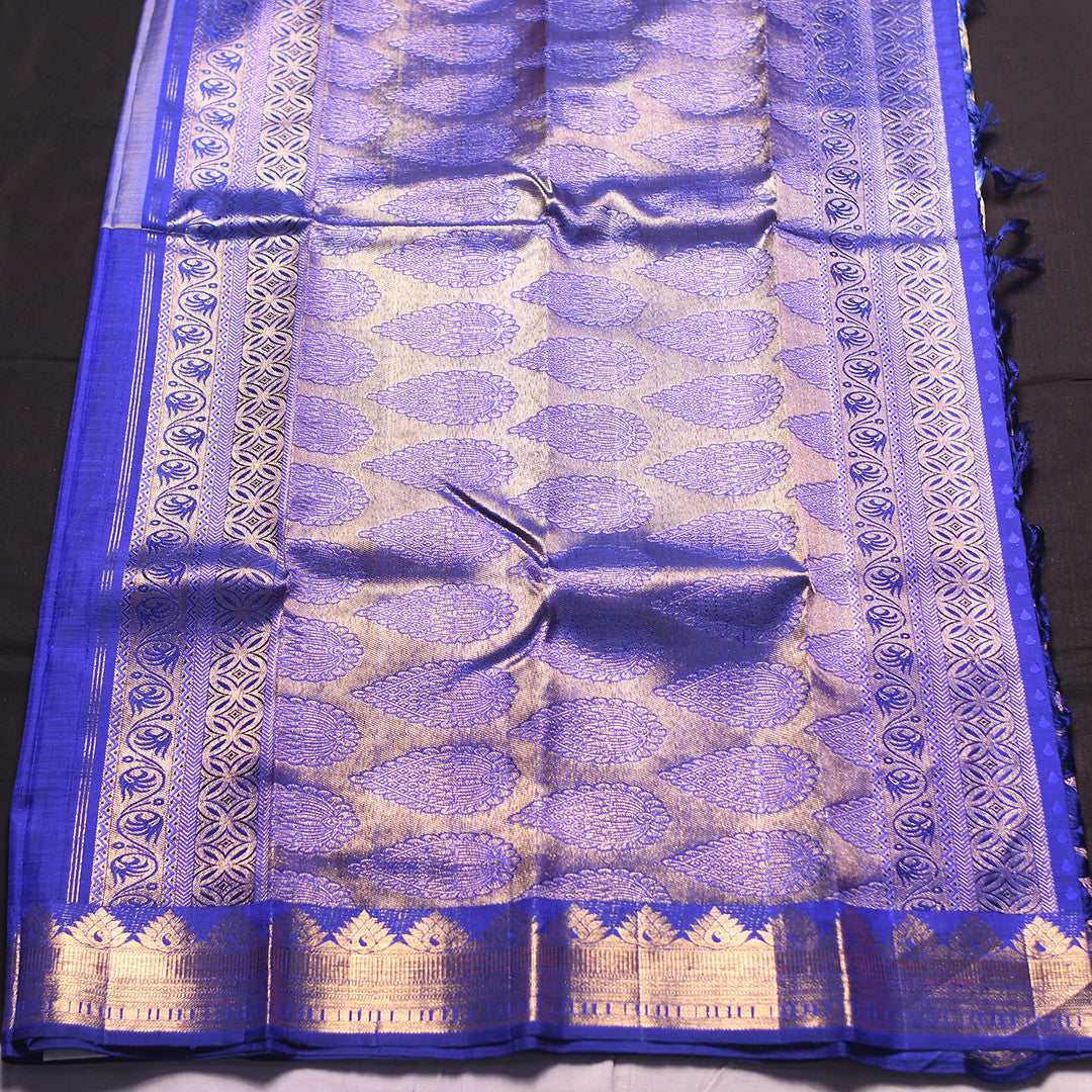 # HV-287 (6 Yards Saree) Elevate your wardrobe with this refined six-yard saree, featuring an immaculate white body that serves as a pristine canvas for intricate detailing. The design showcases a striking blue border that frames the fabric with understated elegance, while delicate disgen butta work adorns the body with traditional artistry. The blue pallu completes the ensemble with a sophisticated flourish, creating a harmonious balance between classic craftsmanship and contemporary grace. Perfect for occasions demanding both poise and timeless beauty.