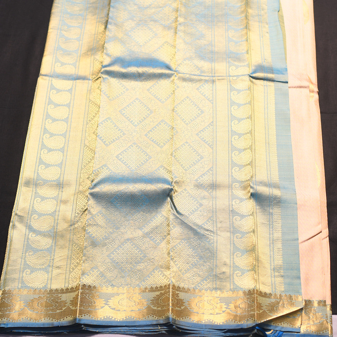 Elevate your wardrobe with this timeless six-yard saree, featuring a pristine white body that exudes understated elegance. The striking blue border frames the fabric with refined definition, while the coordinating blue pallu adds a sophisticated finishing touch. Perfect for both traditional occasions and contemporary styling, this piece combines classic craftsmanship with versatile appeal. The harmonious color palette ensures effortless coordination with your existing collection, making it an essential addition to any discerning wardrobe.