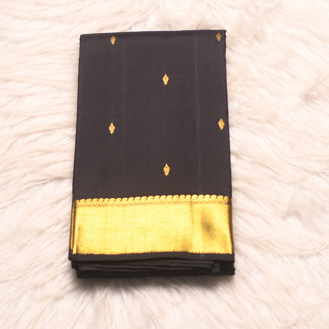 HV-414 is an elegant 6-yard saree featuring a striking black body adorned with delicate small butta motifs. The saree showcases a refined self-design border and pallu, creating a cohesive, understated sophistication. Perfect for those who appreciate timeless elegance with subtle embellishment, this piece combines traditional craftsmanship with contemporary sensibilities. Ideal for formal occasions and celebrations where refined taste speaks volumes.