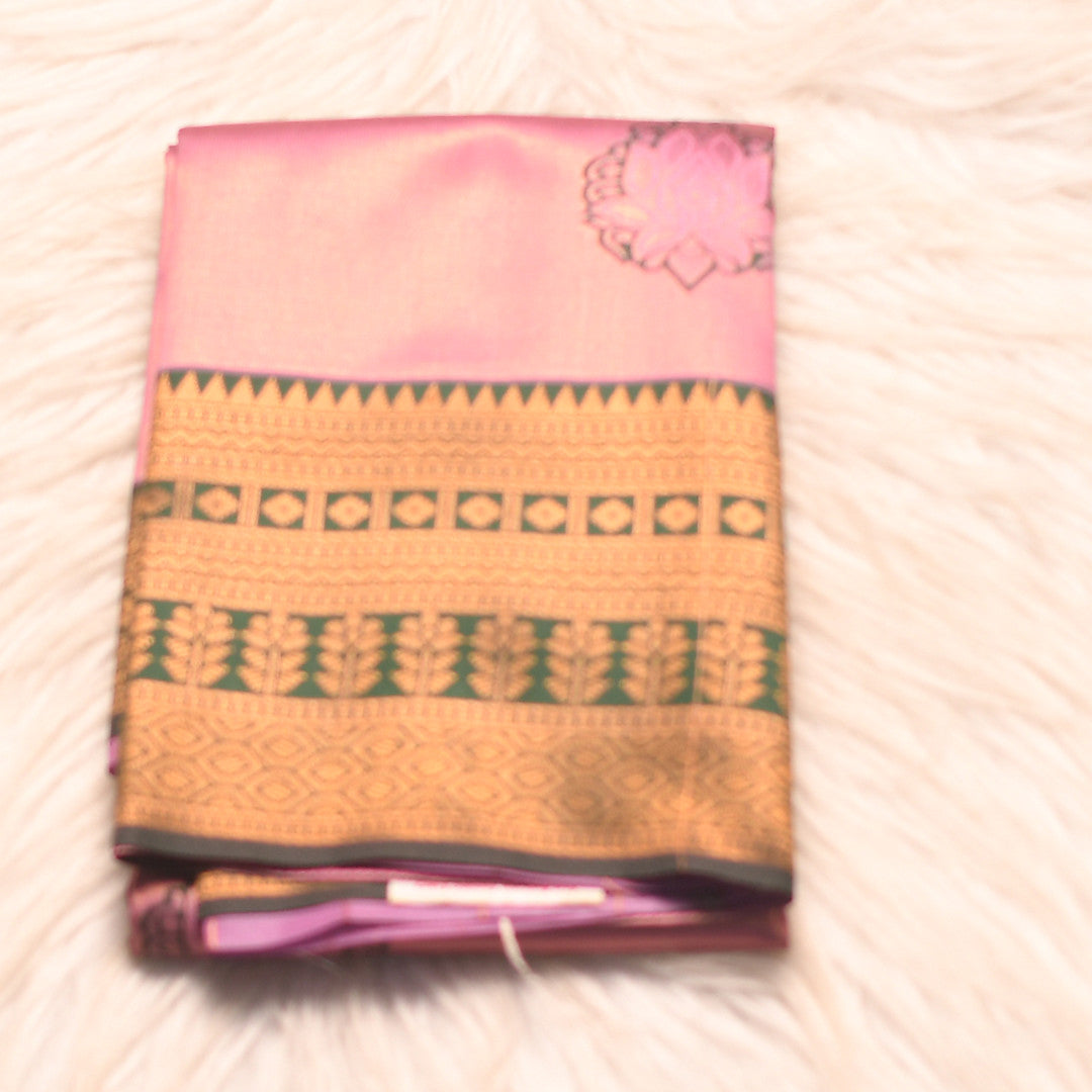Elevate your wardrobe with this exquisite 6-yard saree, a timeless piece that seamlessly blends elegance with contemporary style. The delicate baby pink body provides a soft, flattering canvas, while the striking green border and pallu add a refined contrast that commands attention. Perfect for festive occasions, celebrations, or when you desire an understated yet sophisticated look, this saree showcases traditional craftsmanship with a modern sensibility. The harmonious color palette makes it versatile enough to complement various skin tones and styling preferences, ensuring you feel confident and graceful with every drape.