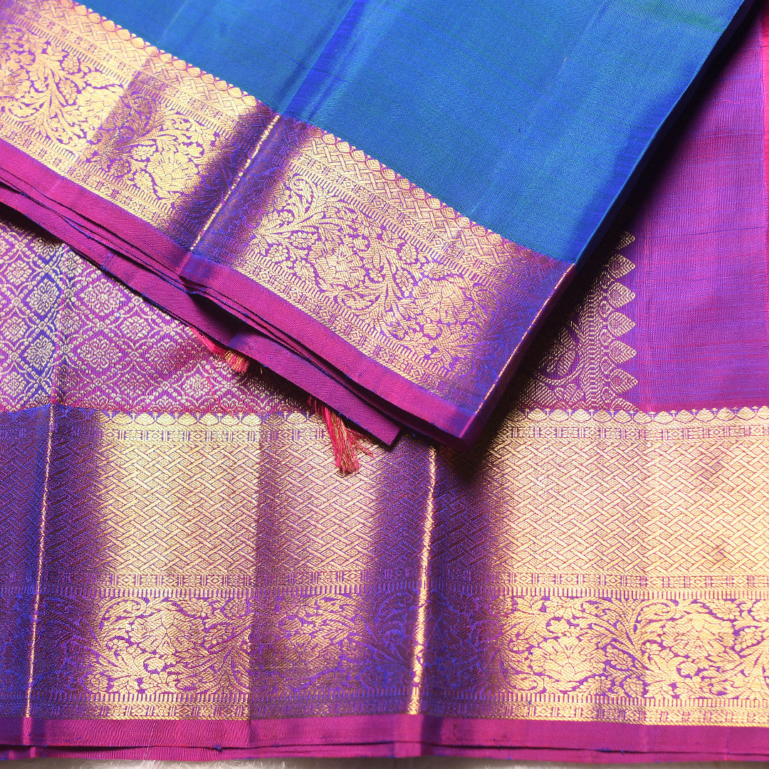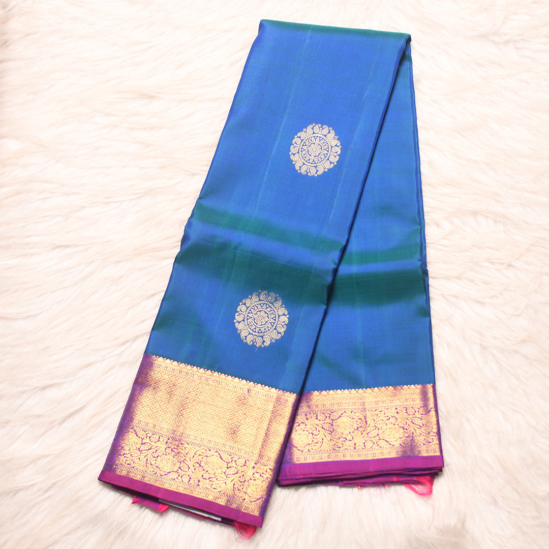 Drape yourself in timeless elegance with this exquisite 6-yard saree, where sophisticated design meets traditional craftsmanship. The serene blue body provides a graceful canvas, while the striking purple pallu adds a regal accent that commands attention. Perfect for festive occasions and celebrations, this saree combines classic aesthetics with refined color harmony. The generous length ensures versatile draping options, allowing you to express your personal style with confidence and poise.