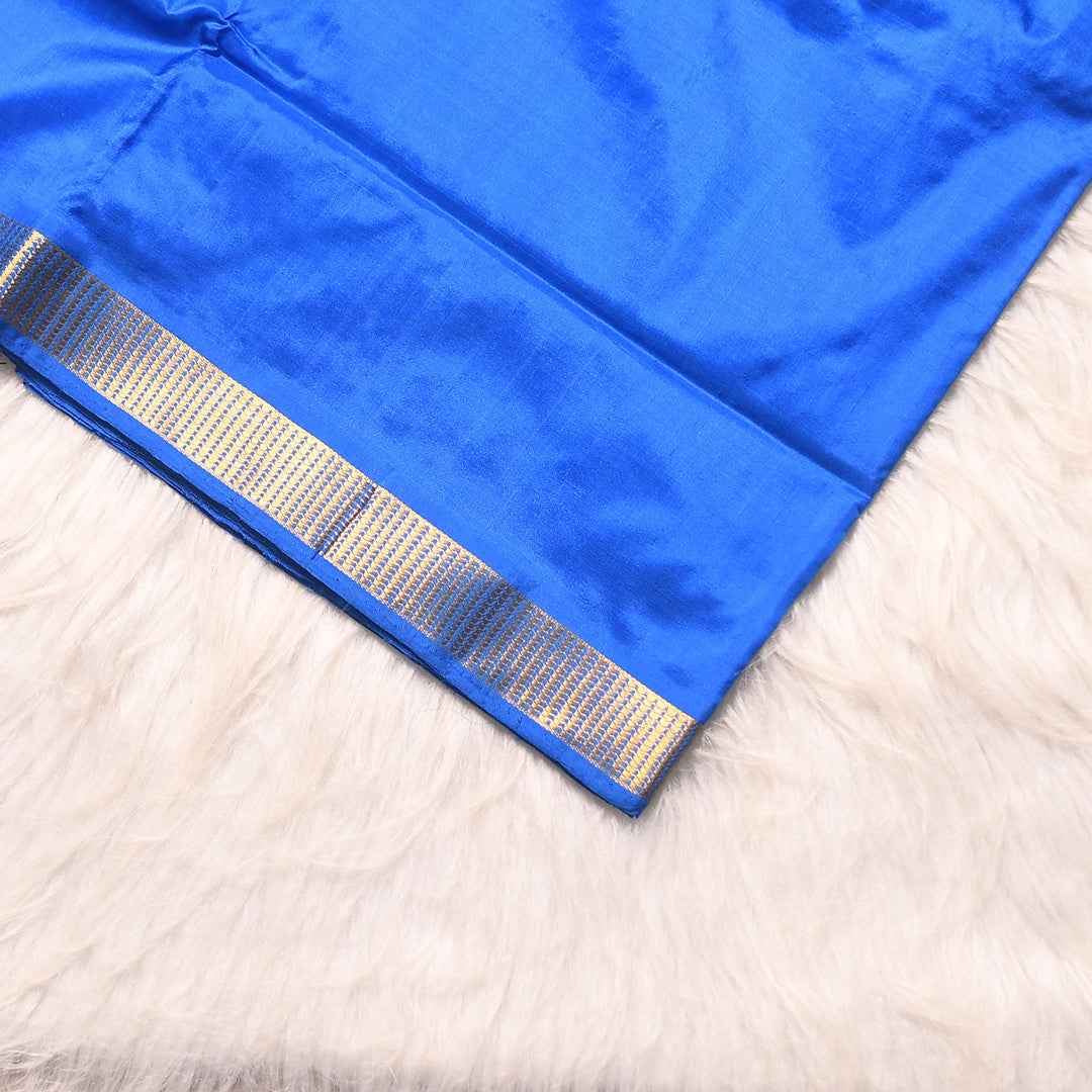Indulge in the luxury and elegance of our L-149 9 yards saree. The rich, deep blue body color and self border pallu exude a sophisticated charm. Wrap yourself in this premium fabric and make a statement with every step. Elevate your wardrobe with this timeless piece.